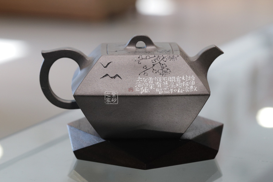 接头的地方应该过渡自然光滑,没有人工修补的痕迹。线条应挺拔清楚,不拖泥带水,花货的形象应尽量逼真、有质感,工具修饰的痕迹应越少越好。我们要以机械整体加工的规格来衡量,好的壶应该就像用机械整体加工出来一般,其加工精度以500元的壶为标准,光面每厘米非造型起伏不得超过±0.1毫米,装配精度误差不得超过1毫米,口与盖的配合间隙在0.5毫米左右,如果盖子是对称几何形,则盖子在各个对称方向上应该配合良好。这里要注意的是不应该有为了配合良好而用砂纸、锉刀打磨的痕迹。