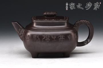 紫砂的陶刻艺术源远流长,形成优良的传统和强烈的艺术风格,绝非一朝一夕的事。追溯陶刻的渊源,可说是随着紫砂陶制作的创始而萌芽,元人蔡司沾《霁园丛话》里就有“余于白下获一紫砂罐,有‘且吃茶,清隐’草书五字”的记载,由此说明早在元代紫砂器的初创时期,已在紫砂器上进行陶刻了。