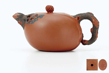总之,提璧壶称之为国之瑰宝,当之无愧。该壶无论在材质、造型、工艺技法、日用功能、内涵、把玩、形式、内容上笔笔生花,处处显力,无不灵秀,无不精神,力度凝重,格调清新,气势端庄,风韵别致,不愧为紫砂光货体系中素器裸胎艺术的杰出代表、经典之作,不愧为紫砂光货造型艺术体系的一面旗帜、一座丰碑,也不愧为受世人珍重、喜爱、崇尚、追索,不惜巨金收藏品玩的“艺术珍宝”。国之瑰宝提璧壶当永载壶史,千秋光耀。