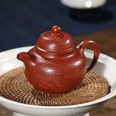 现代仿品多用化工泥,吸水率低,试水时水珠滞留明显,而真紫砂吸水均匀 。