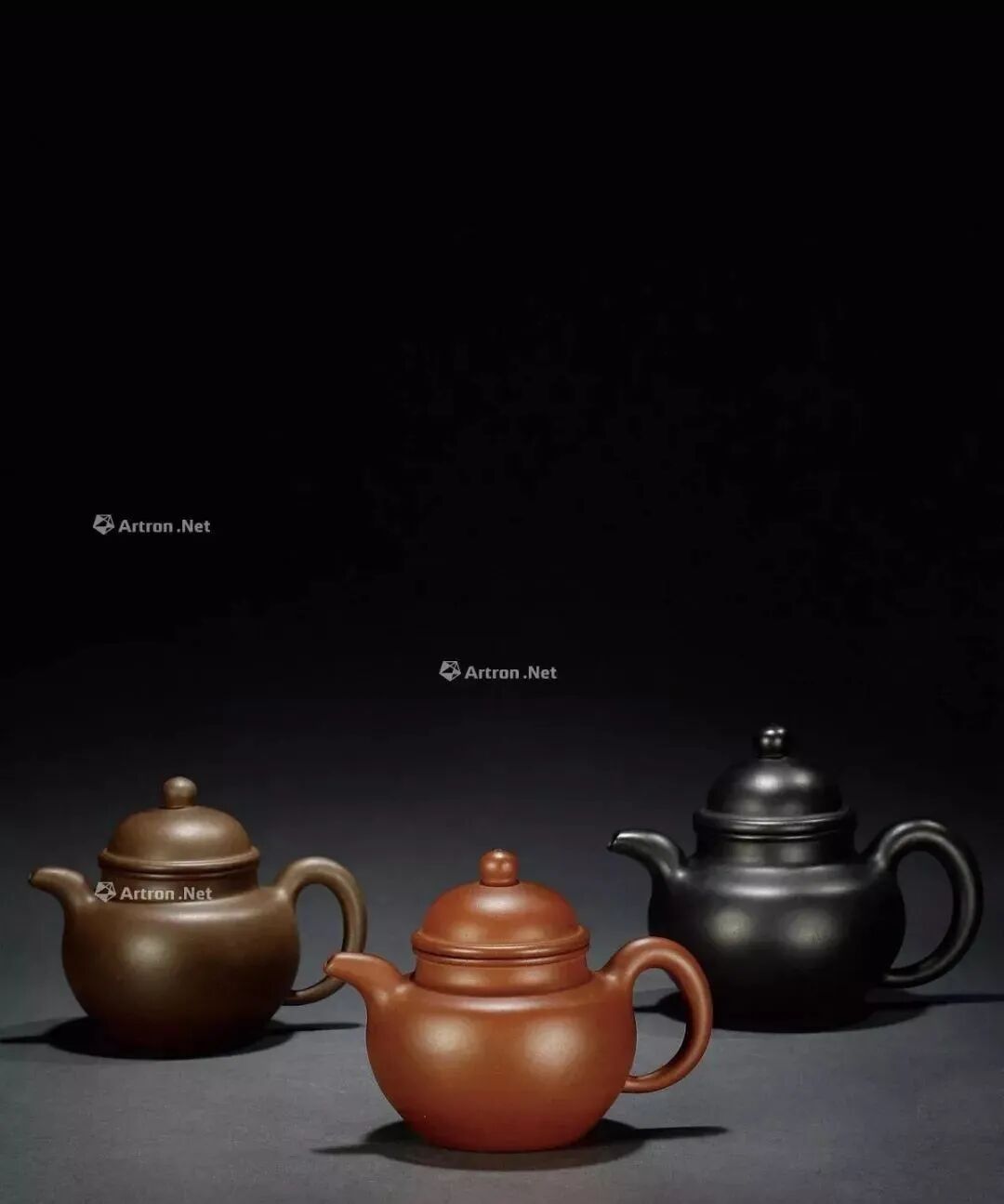清末民国·程(陈)寿珍制冰心道人款紫泥掇球壶 (一组三件)