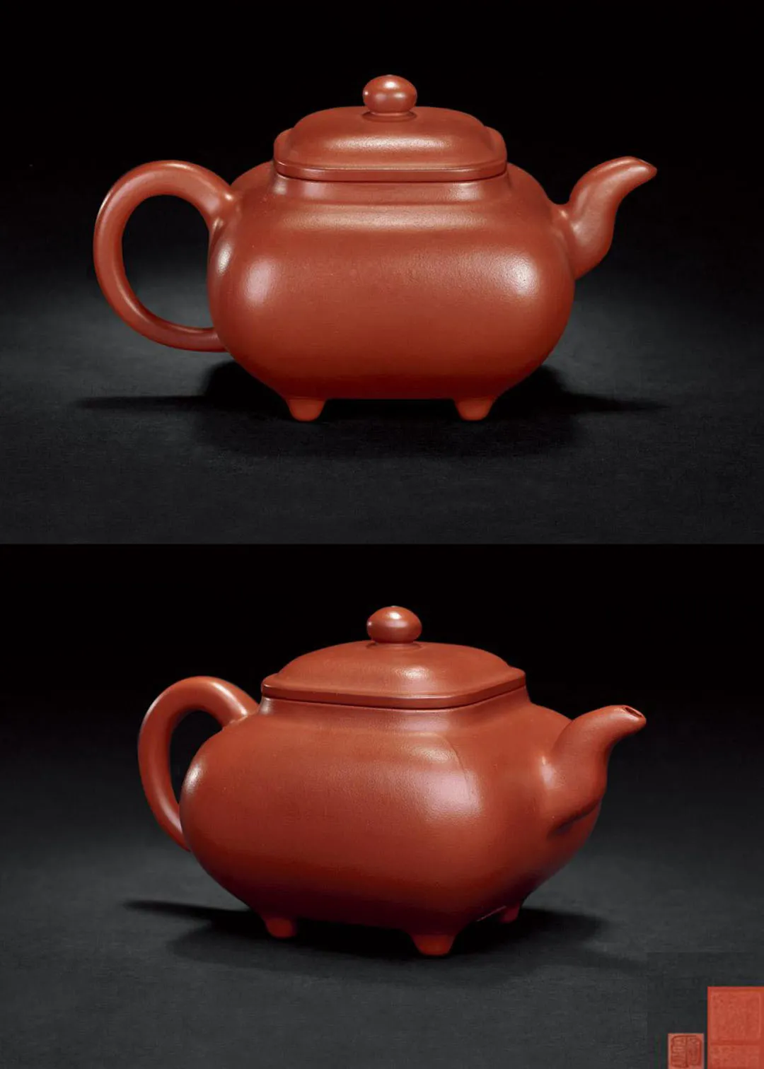 就造型而言,四方传炉壶属于紫砂光素器的范畴,器身形状以方器为基本形,是方中有圆,圆中寓方的典范。