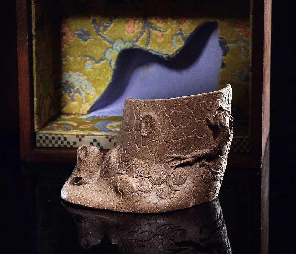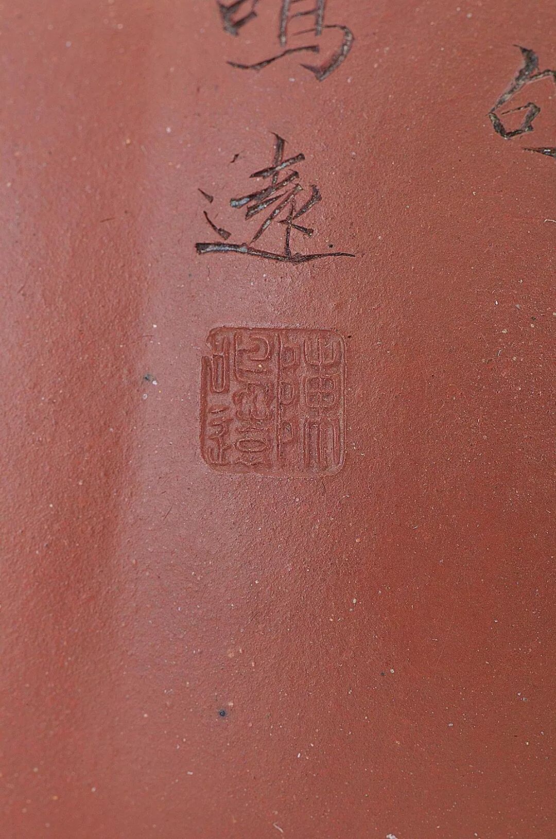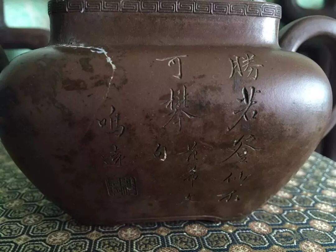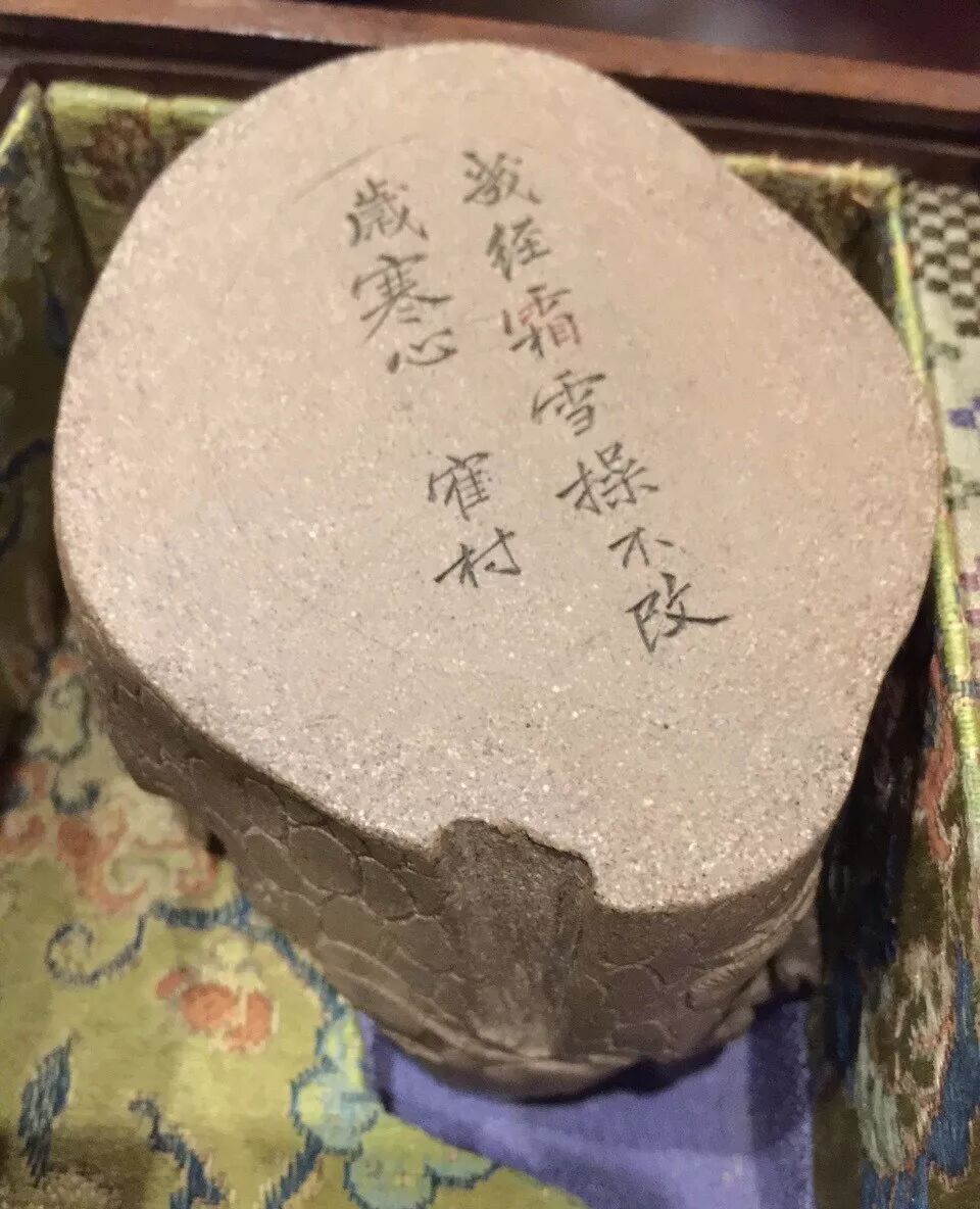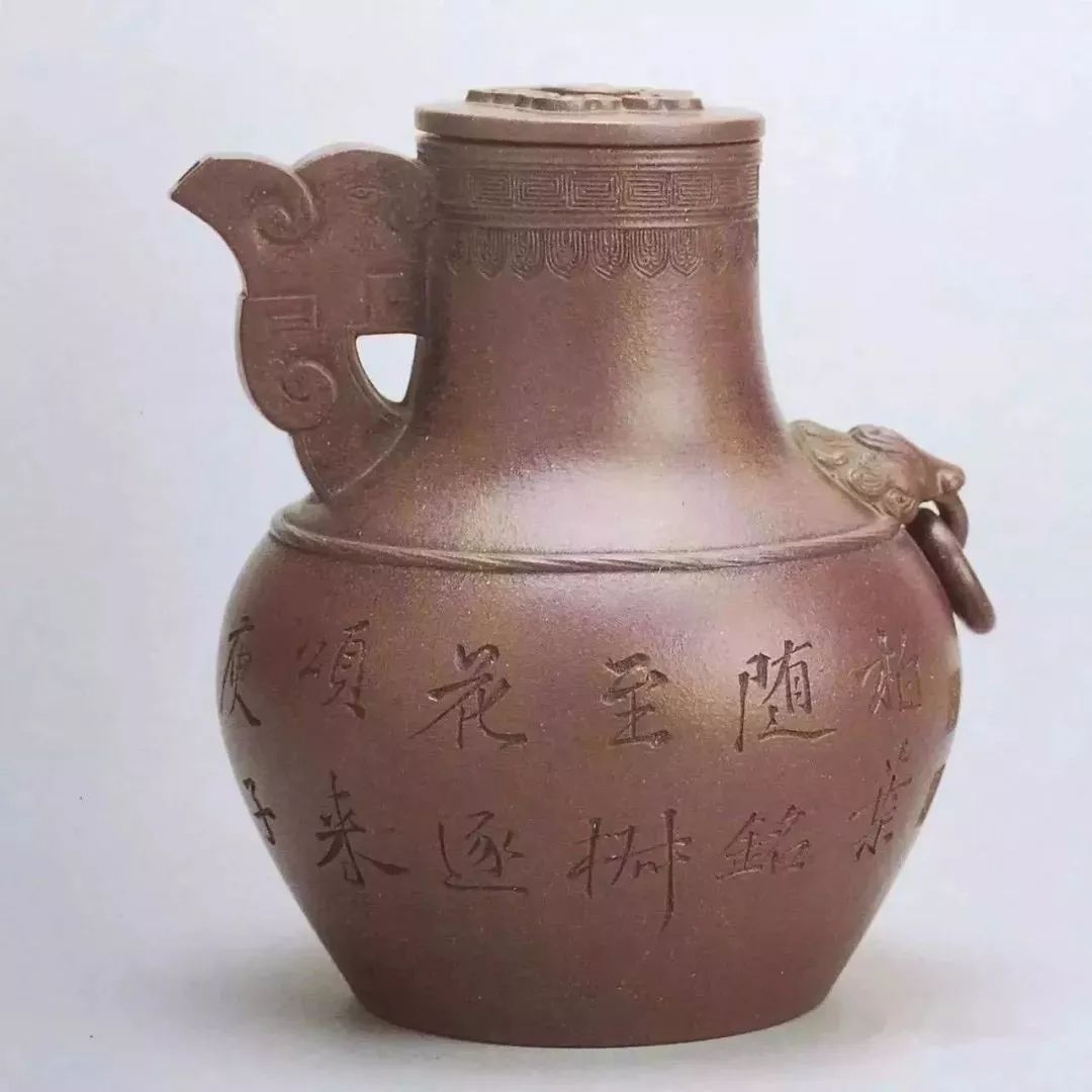 紫砂壶与诗文的结合,使光素无华的壶体增添了隽永的情趣,更具有浓厚的书卷气。紫砂上最美的诗铭镌刻,当属陈鸣远大师铭文镌刻。