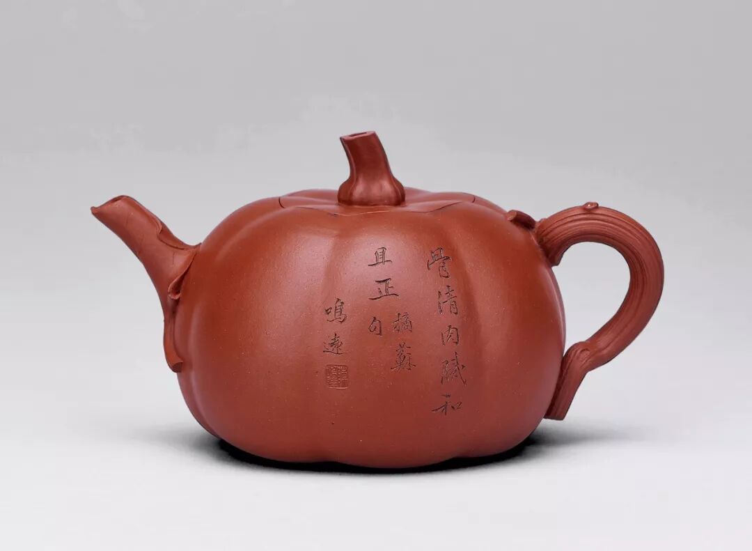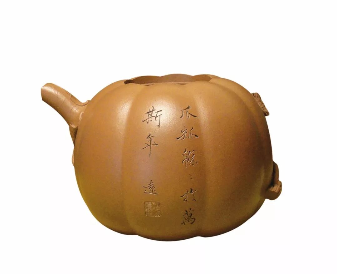 司马迁的《史记》、郦道元的《水经注》和刘伯温文章都写到过,有个汉代人召平,秦始皇时封为东陵侯。他品格很高,甘于安贫乐道。秦朝灭亡后,当个布衣,在长安东门外种瓜,那瓜很是甜美。人们就叫它为东陵瓜。陈鸣远仰慕召平的节操,以香瓜形状制壶,刻“仿得东陵式,盛来雪乳香。”壶铭,见其心迹。陈鸣远开创了壶体镌刻诗铭作装饰,署款以刻名和印章并用。把中国传统绘画书法装饰艺术,与紫砂制作工艺相结合,赋予了紫砂作品深厚的文化内涵,具有划时代的意义。