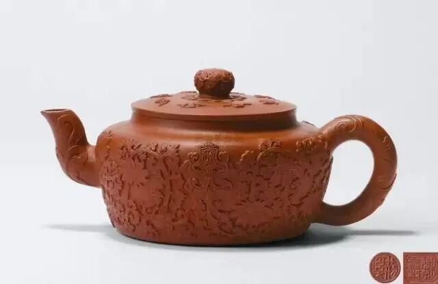 从光素器到花器,人们的审美不一而足,也就造成了紫砂壶千姿百态的装饰工艺,使紫砂壶具有茶器中最丰富最别具一格的艺术审美价值。贴花工艺的装饰过程,是先将泥块儿切成小片,然后捏造成花卉,树叶等样式,再用竹片等工具修饰成理想的形状,继而用泥浆粘合在壶体上。