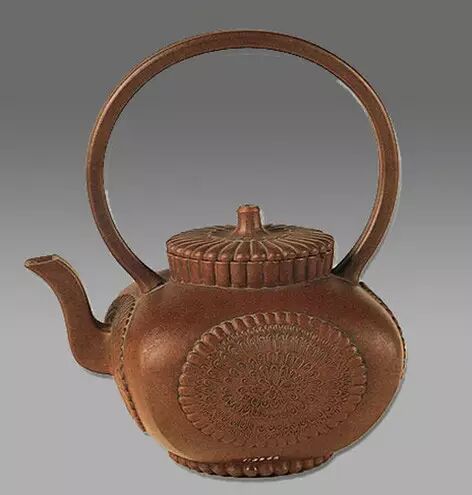 清 堆贴菊花纹提梁壶