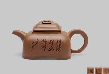 再说一说紫砂壶上体现出的时代特征。早期宜兴紫砂壶制坯方法主要分挡坯成型(捏作)与印模成型两种。捏作车坯大约在明代至清前期多采用此法,扬州出土的三类壶均采用上述方法,时代约略在此时间偏后段上。三类壶都使用篆书印章式方框款。「元章」二字应为工匠人名,苦于无资料可藉,无法寻清确切的年代。香港著名紫砂研究者罗桂祥先生曾着《宜兴陶器(英文)》,书中概括出了紫砂器的署名与年款的特征︰万历年间,以欧体、楷书刻于壶之外底,以时大彬刻款最为典型;明、清之际刻名与印章并用;康熙以后刻字减少,壶底用印外,或于盖印,把下盖印。由此观之,扬州的紫砂壶时代约在康熙以后。