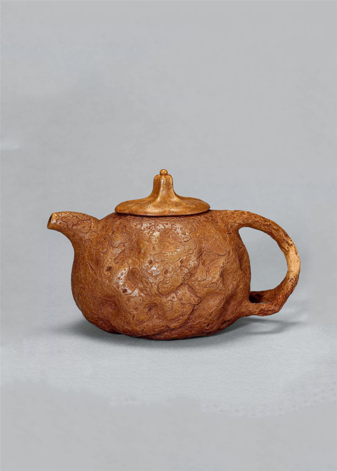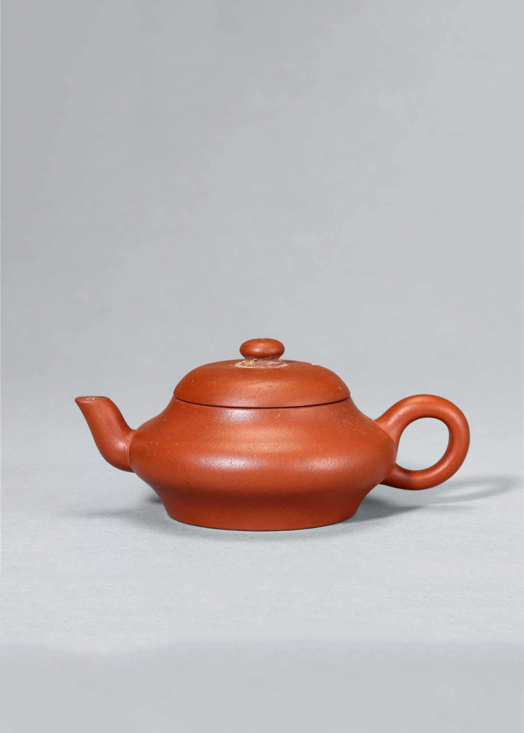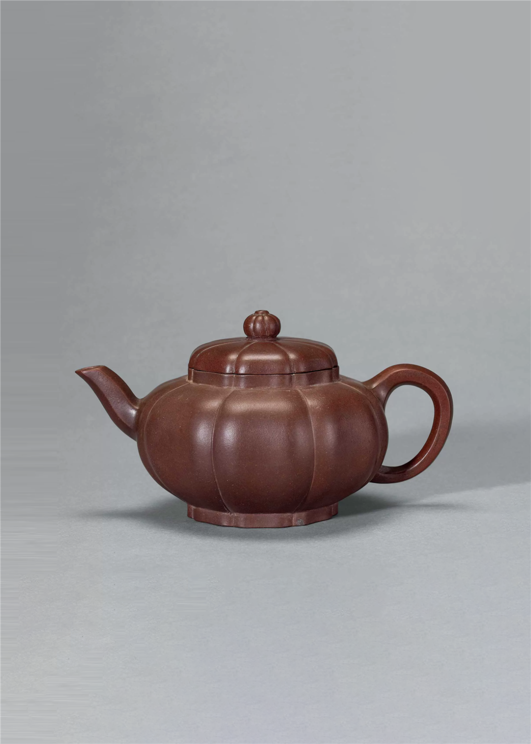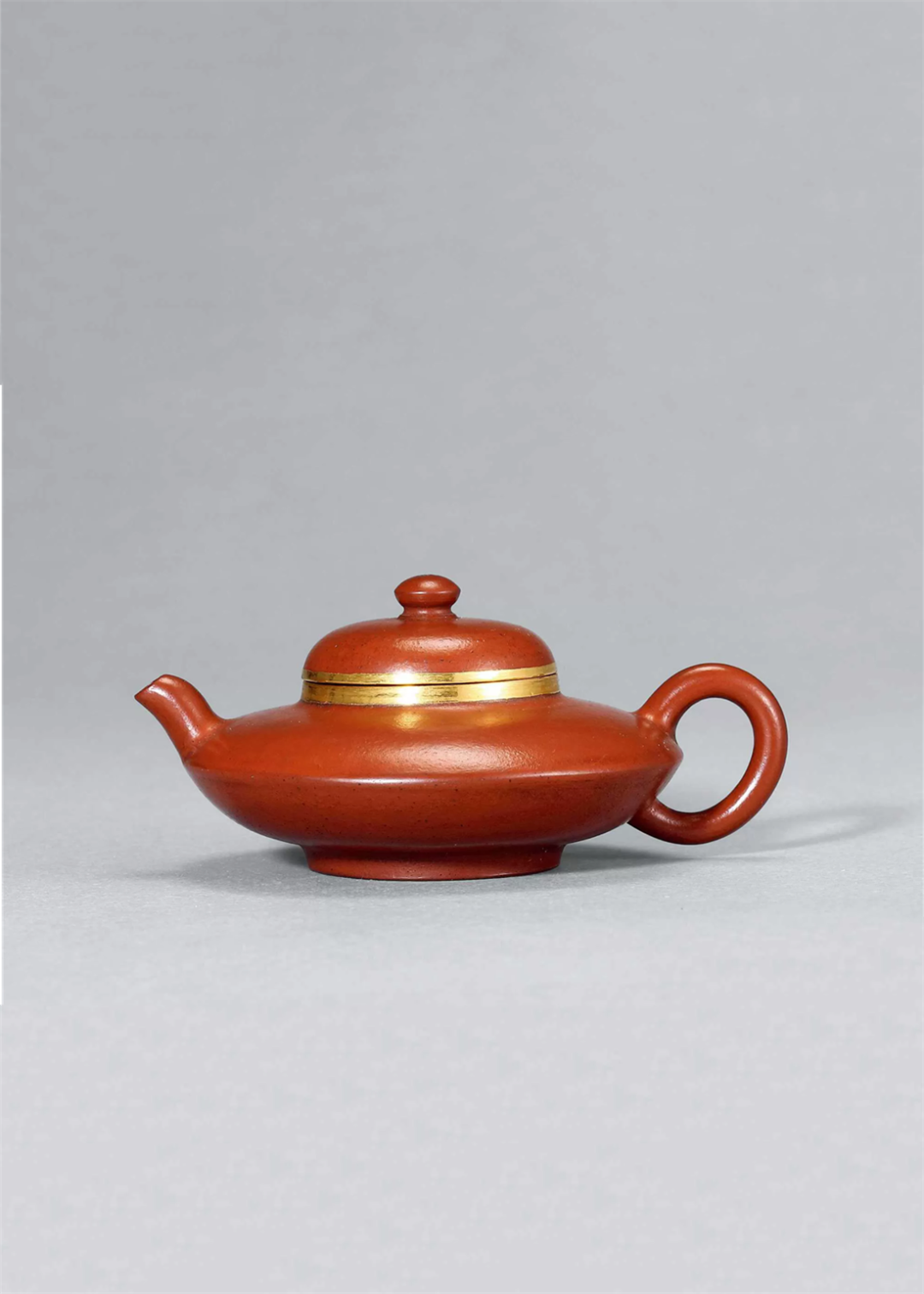 1149 明末清初 陈用卿制紫泥金钱镂空钮披肩如意纹大壶