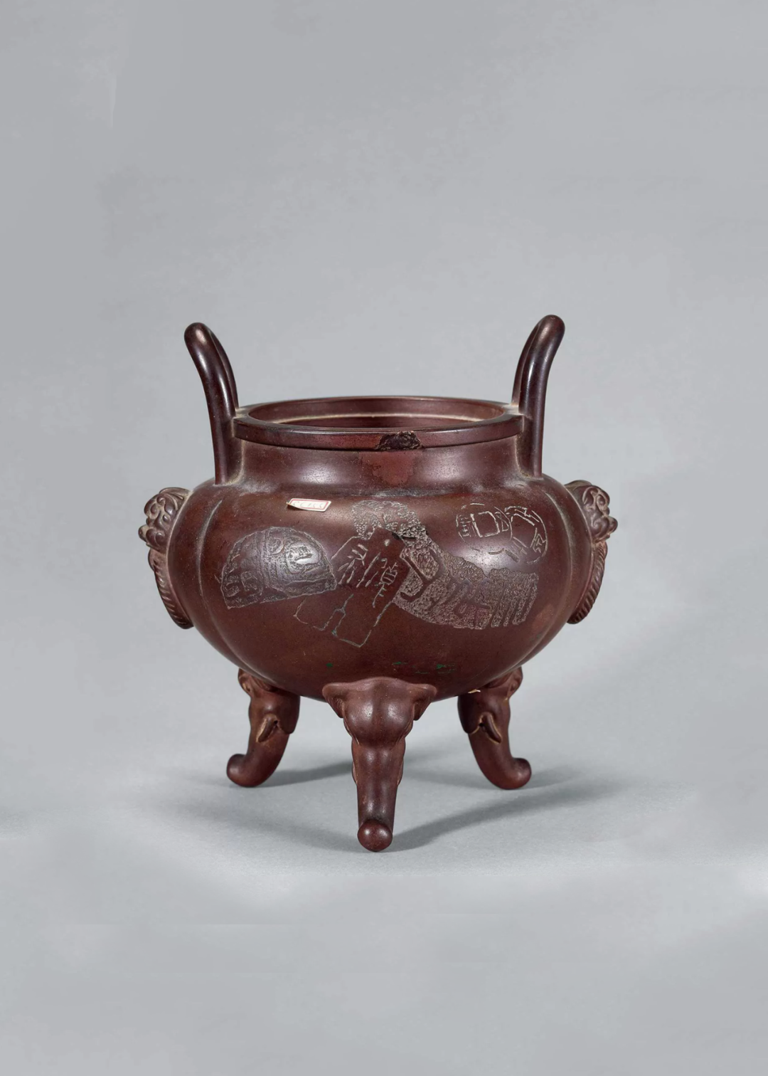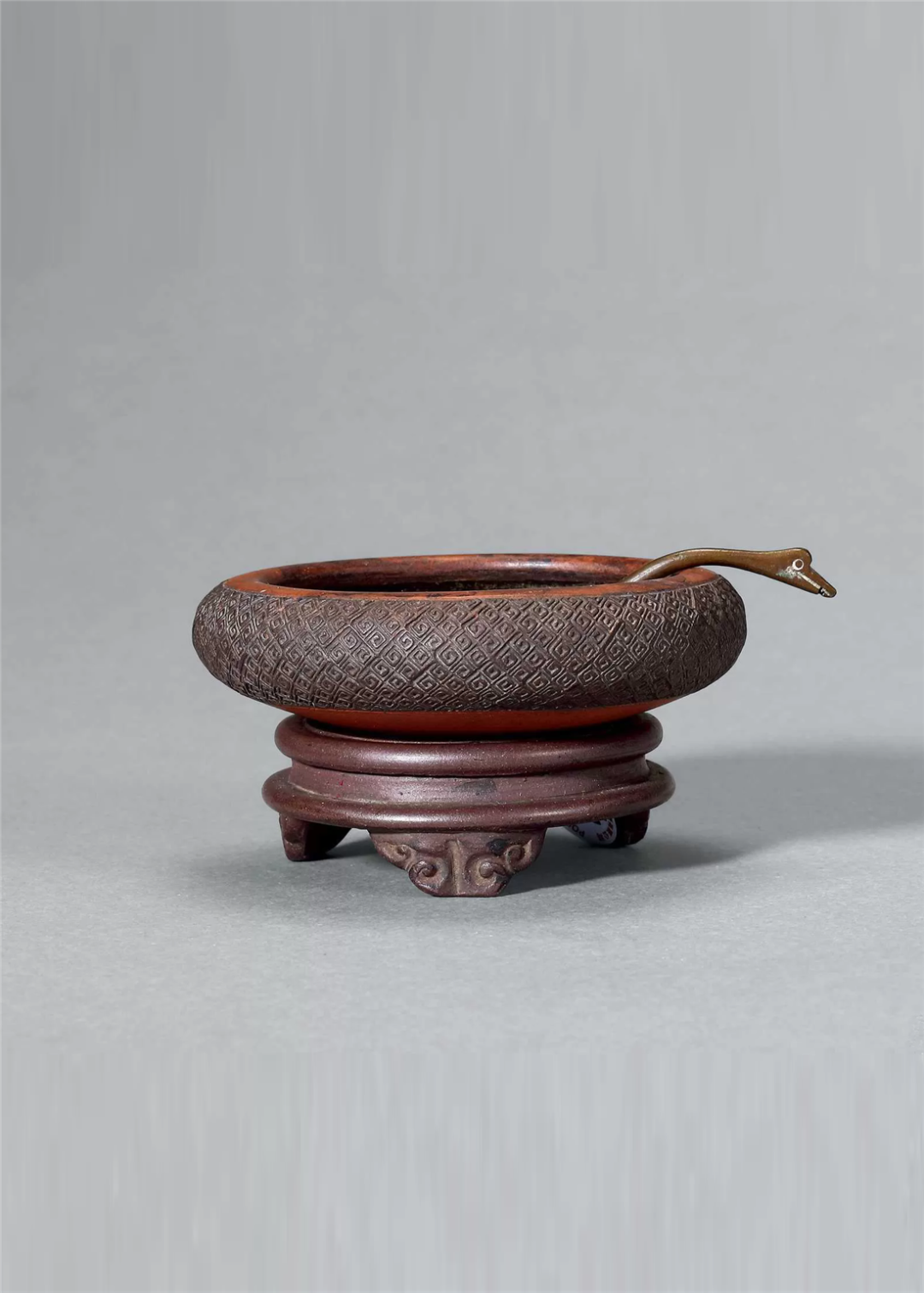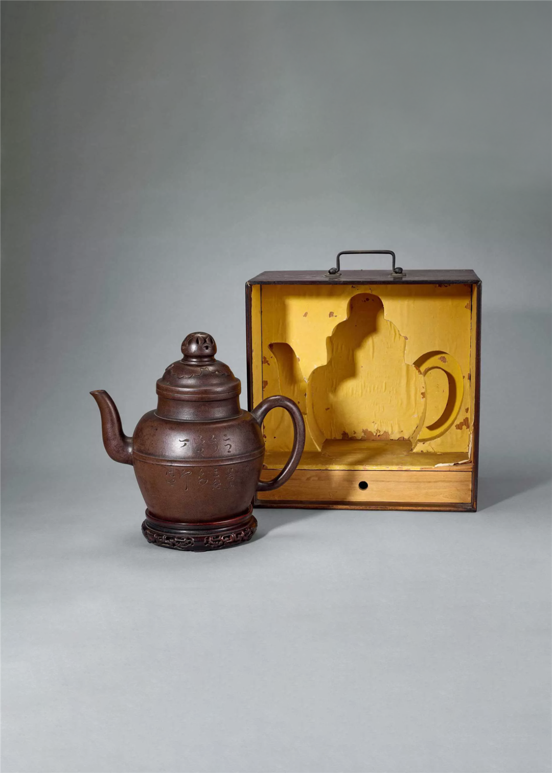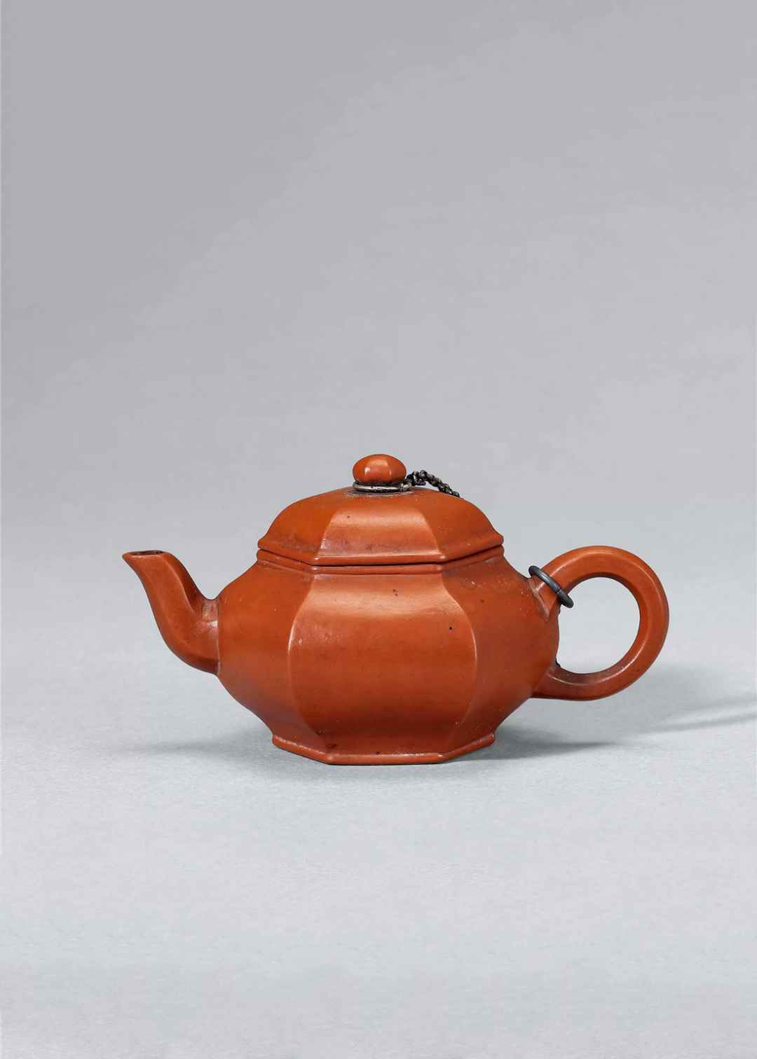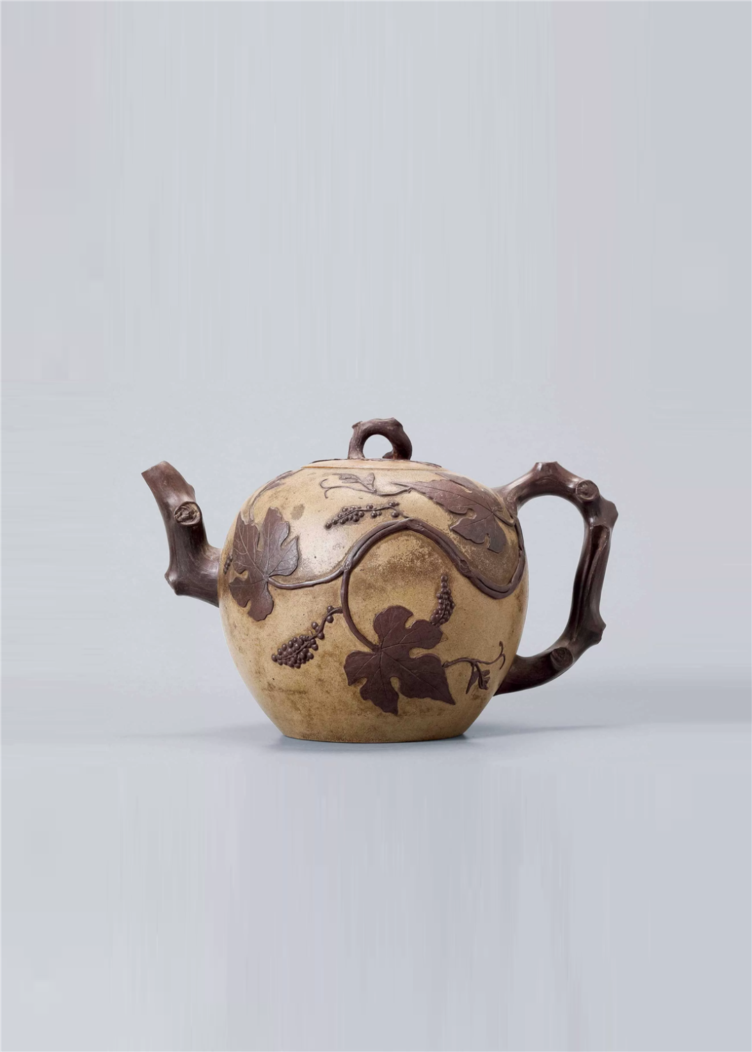 1149 明末清初 陈用卿制紫泥金钱镂空钮披肩如意纹大壶