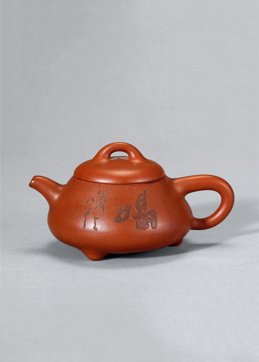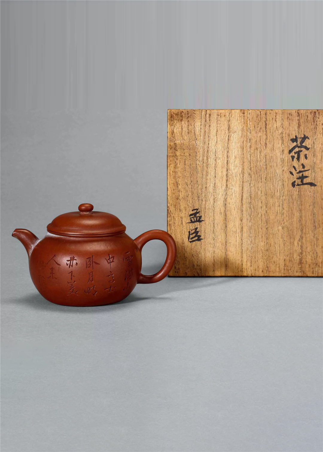 1135 清早期 孟臣诗句朱泥梨皮君德壶