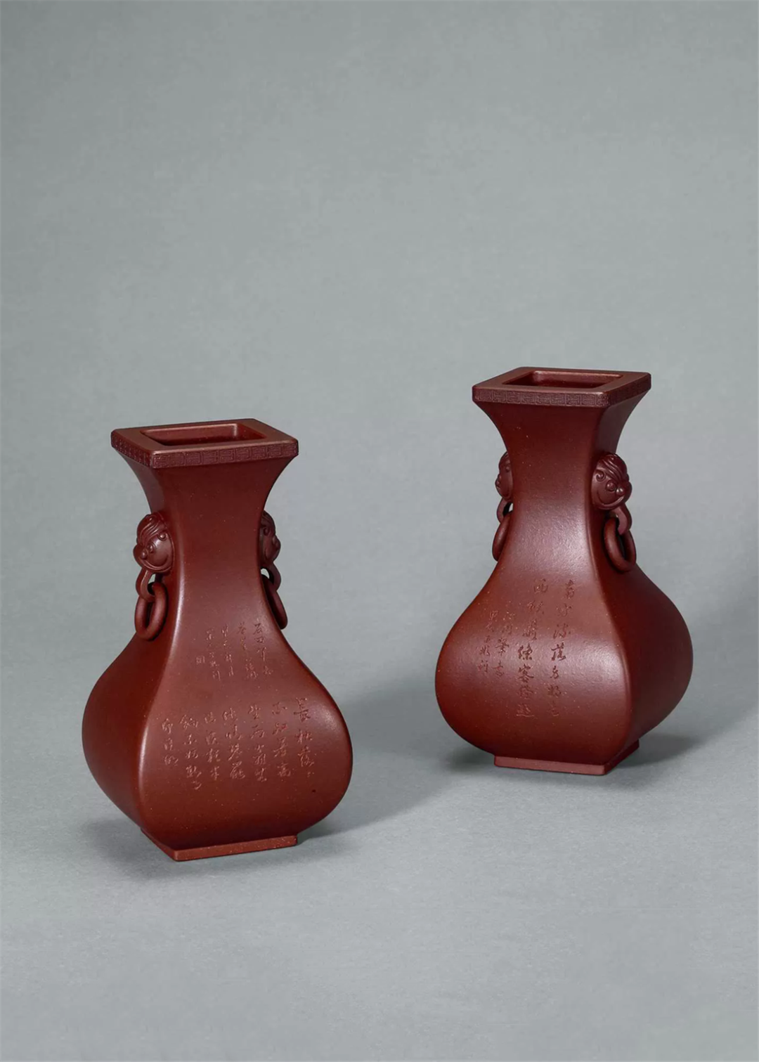 1122 当代 贺志斌刻古意仿古蒜头梅瓶 (一对)