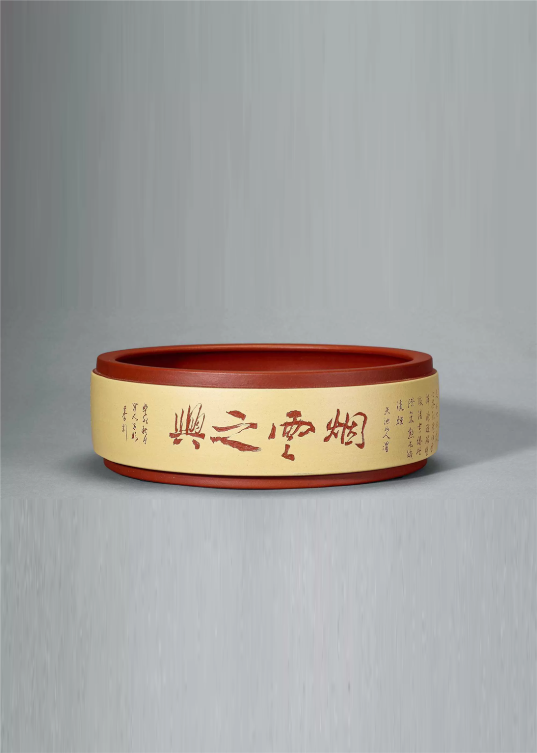 1121 当代 贺志斌刻徐渭“烟云之兴”煎茶七类书法紫砂笔洗