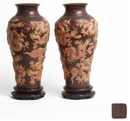 剔雕九龙纹紫砂梅瓶紫砂之家讯:梅瓶是一种小口、短颈、丰肩、瘦底、圈足的瓶式,以口小只能插梅枝而得名。因瓶体修长,宋时称为经瓶,作盛酒用器,造型挺秀、俏丽,明朝以后被称为梅瓶。近代许…详情>