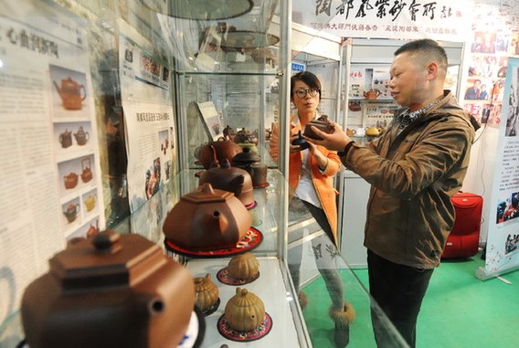 紫砂之家讯:当日,在2013首届福州茶产业博览会上,上千款宜兴紫砂手工艺精品精彩亮相,众多紫砂艺术家进行了现场制作紫砂壶活动,吸引了品茶赏壶者参观欣赏。详情>