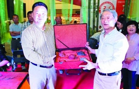 紫砂之家讯:无量心生福报曹安祥紫砂世家艺术展19日在北京荣会艺术中心举行,中国著名紫砂艺术家、高级工艺美术师曹安祥在现场为嘉宾介绍最新力作《中华福祉》紫砂壶。图为曹安祥最新力作《中…详情>