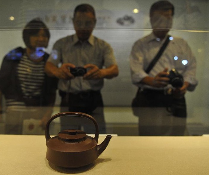 紫砂之家讯:10月5日,观众在台北历史博物馆参观展出的宜兴紫砂壶作品。当日,由台北历史博物馆和江苏省宜兴市陶瓷行业协会共同主办的陶都风宝岛情宜兴紫砂艺术台北展在台北历史博物馆开展,…详情>