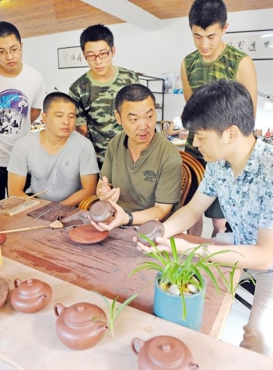 紫砂之家讯:丁蜀镇退伍军人董继军当兵前就有一手好的紫砂陶制作技艺,1996年退伍后更是潜心钻研。2003年他创办了神韵手工陶坊培训班,不仅免收学员培训费,每天还免费提供午餐。10年…详情>