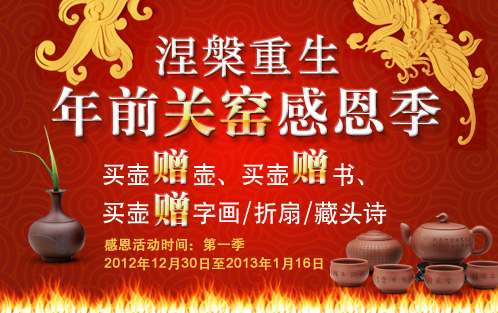 紫砂之家讯:伴着极美的心情度过了一个极富情趣的圣诞节,侧耳倾听,新年的脚步声近了、更近了。回顾过去的日子在一年的三百六十五里路上,尽管有着几多曲折,但我们已经过来了,年终到来需要给…详情>