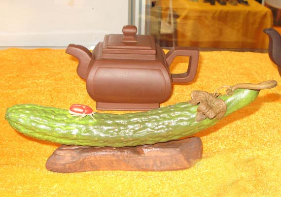 紫砂之家讯:由上海鸿运斋创意、制作的玉雕镶嵌快乐紫砂壶近日在上海问世。整把壶呈小提琴构造,壶钮设计成音符形状,壶身正面镶嵌了一对采用碧玉白玉雕刻的大熊猫。这是紫砂壶600多年历史上…详情>