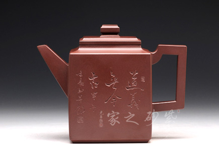 钱丽媛自小学习紫砂技艺,手艺精湛,做工精细,她虽为女儿身,可除了做圆形紫砂壶外,所做方器同样能刚劲有力,张弛有度,不输男子,同样深受广大壶友喜爱,值得收藏。此壶造型端庄,刻绘内容丰…详情>
