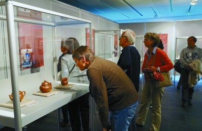 宜兴紫砂艺术展在德国柏林中国文化中心开幕。本次展览汇集了紫砂壶制作大师周桂珍、高振宇、徐徐创作的曼生提梁壶、德钟壶、宫灯壶等24件艺术精品。中国驻德国大使馆文化参赞陈平、巴黎中国文…详情>