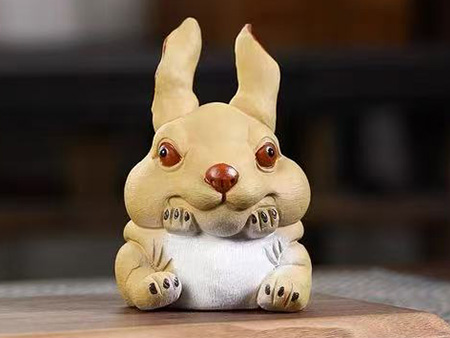 泥性:感甜嫩绵密,质坚而温润,呈近田黄色调,为江苏宜兴赵庄山系朱泥矿~黄石黄之共生矿,经挑拣练製而成,因含铁量只达6%左右,致陶之后呈“金田黄色”。