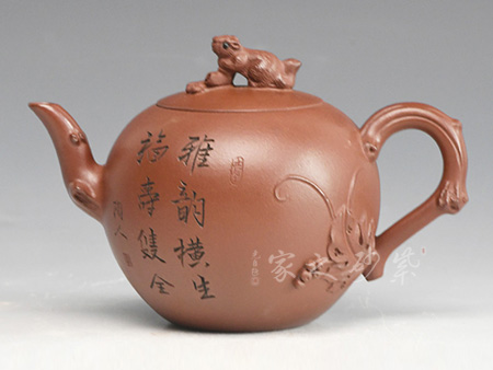 此壶名为“松鼠葡萄”,是何道洪老师的得意之作。