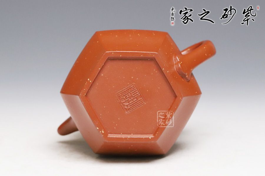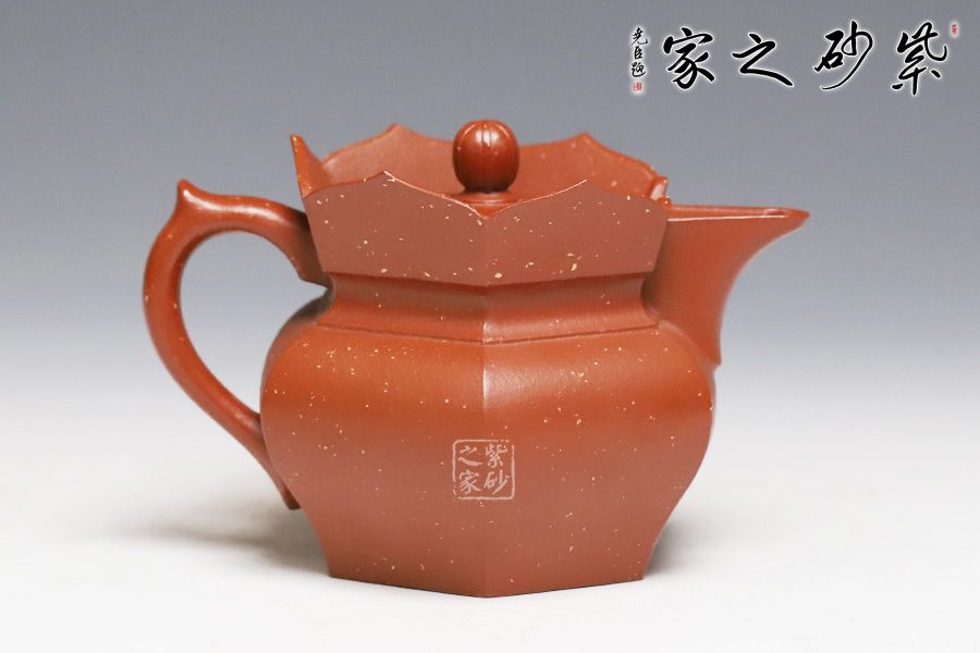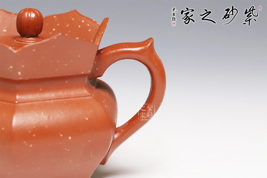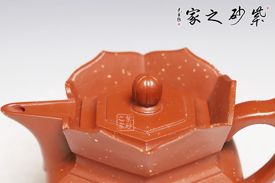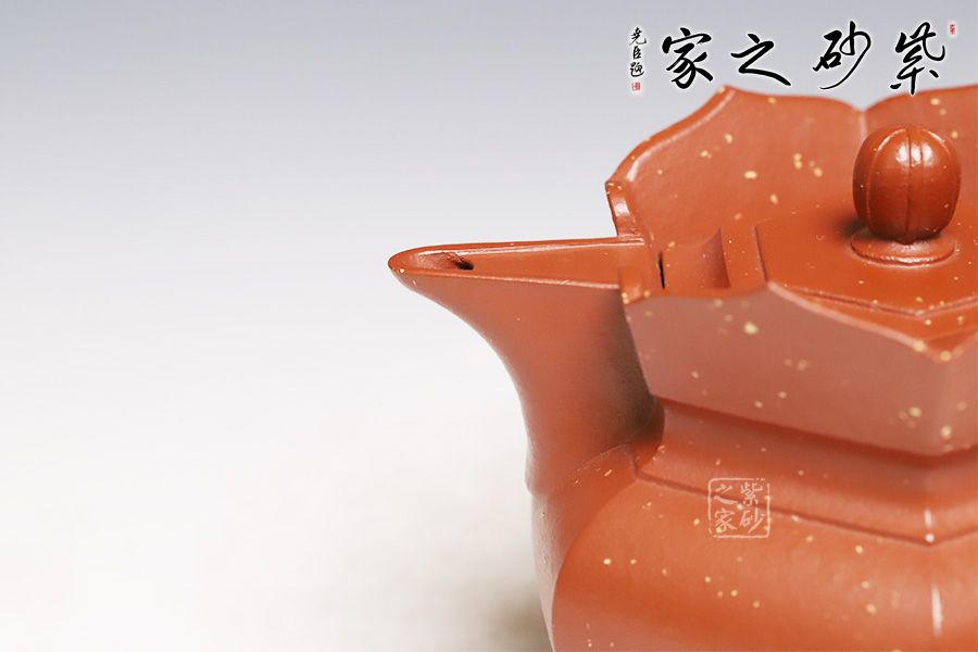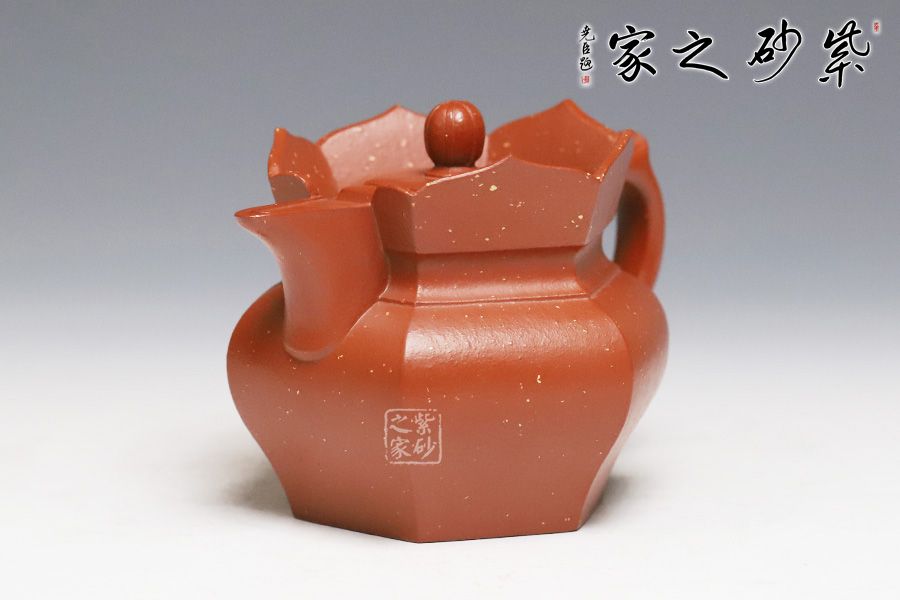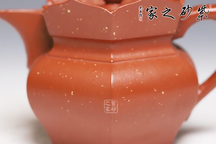 赤龙焕彩,采用家藏大红袍朱泥底料结合极其珍贵黄金段料研磨成颗粒,请教原紫砂厂练泥车间老师傅,进行多次配比实验,烧成后黄金段颗粒自然排列有如龙之金鳞,融合的大红袍朱泥特性,故名赤龙焕彩。