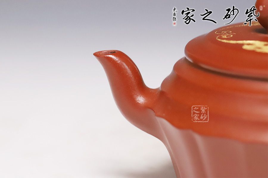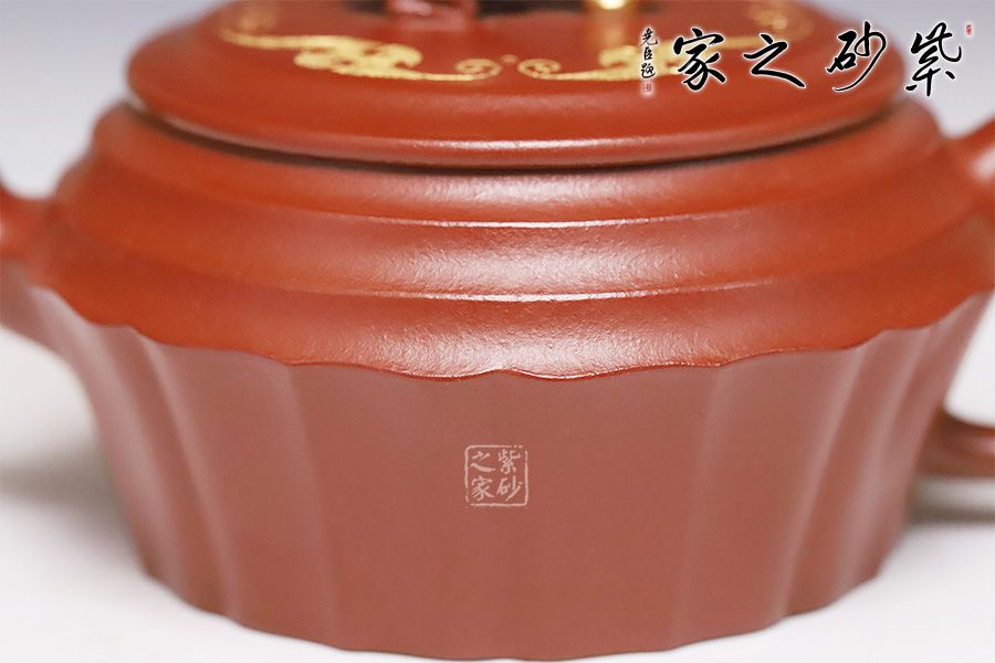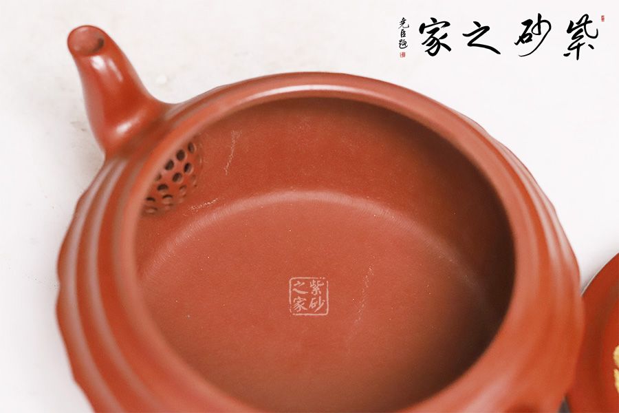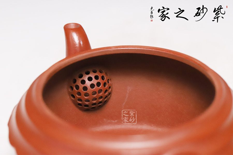 特点:质感绵密、紧实细緻,持之扎实沉重、红润豔丽,泥中极品,无以伦比;泥胚含少许原矿颗粒,冲淋热水后色变极大,呈红中带紫,养壶易现“包浆”之美。