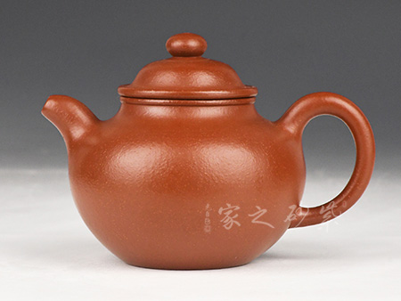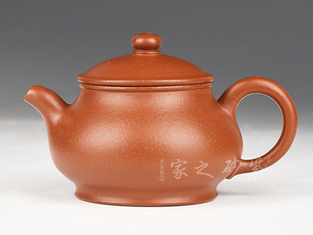特点:质感绵密、紧实细緻,持之扎实沉重、红润豔丽,泥中极品,无以伦比;泥胚含少许原矿颗粒,冲淋热水后色变极大,呈红中带紫,养壶易现“包浆”之美。