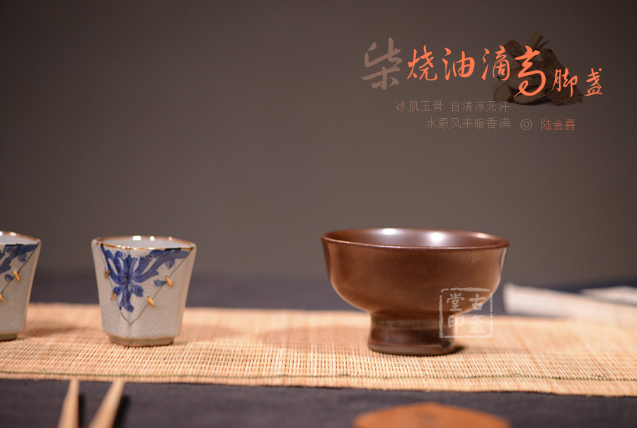 柴烧油滴高脚盏[65057] 陆金喜/ 10*6.1 / 150cc