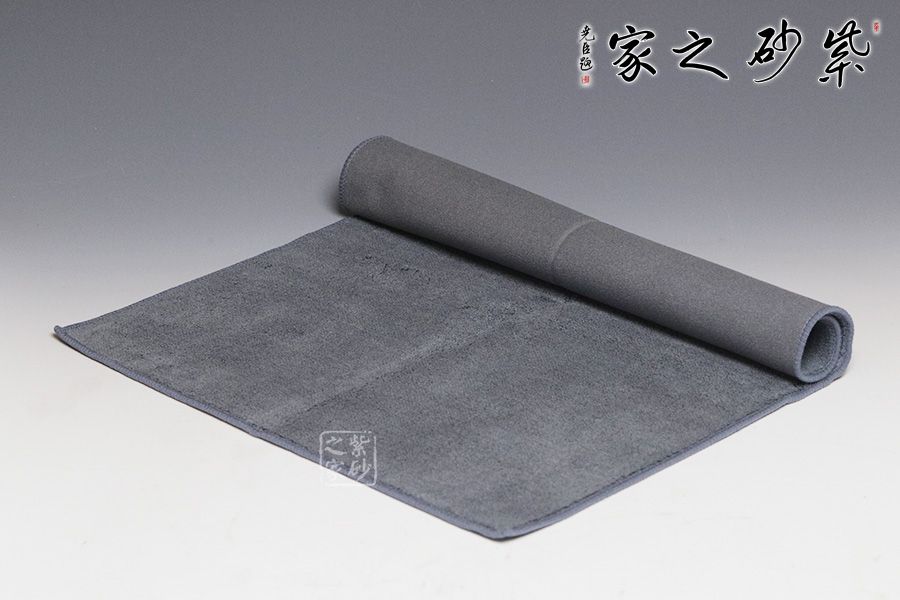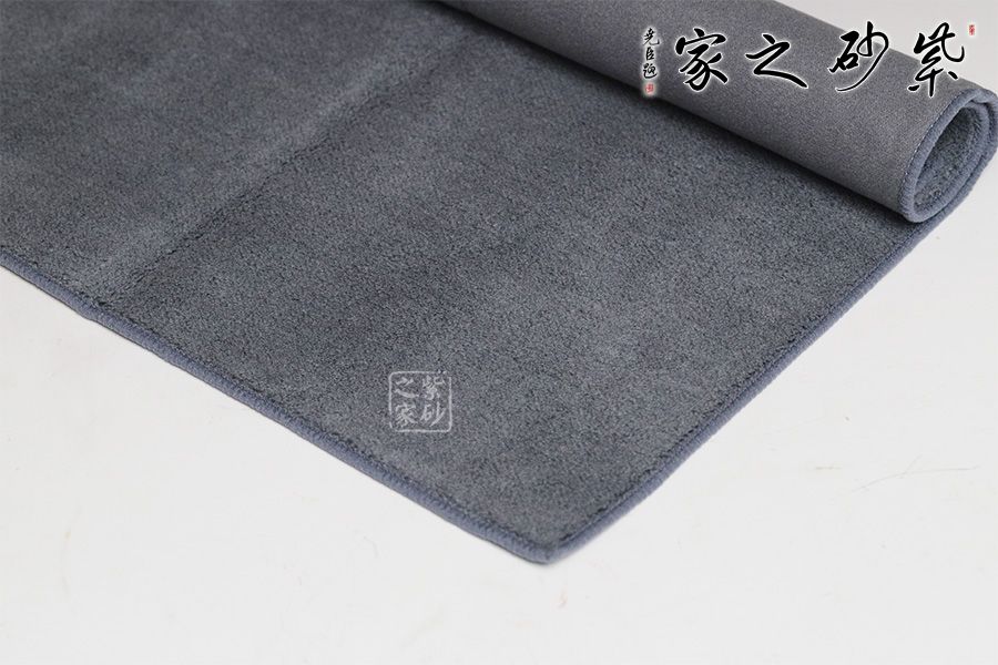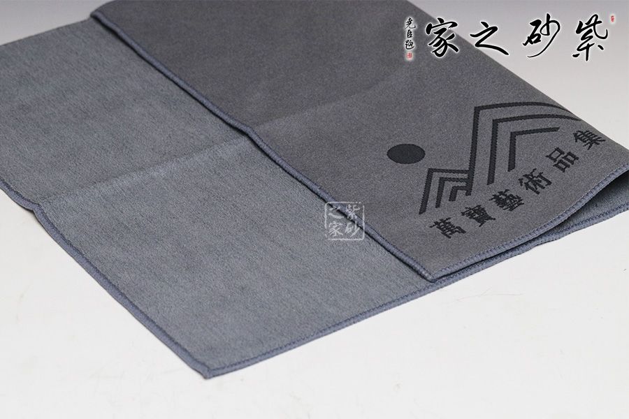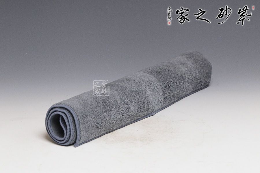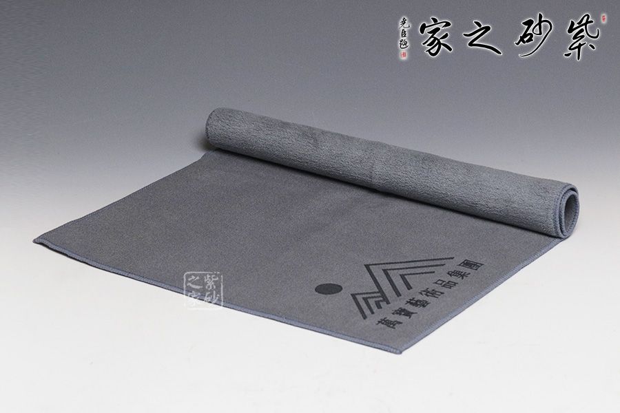 茶巾的主要功用是干壶,于酌茶之前将茶壶或茶海底部衔留的杂水擦干,亦可擦拭滴落桌面之茶水。茶巾蓬松、飘逸、手感柔软。茶是与洁净联系在一起的,附着在茶巾上的,除了清水,便是茶水,多是茶叶或茶渣,所以,与其他毛巾不同,茶巾不会显脏,更不会有异味。茶巾不仅是一种工具,还是道具,每一次揩抹,都像是习惯性的对茶具的抚摩,而不只是为了洁净。在这里,喝茶就成为一种生活艺术,除了本身实用的解渴意义,更重要的是审美的欣赏。
