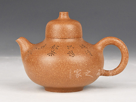 特点:原矿因含缎泥、红泥、紫泥等诸多共生矿,陶之后,于深沉之“橙红色”底上,满佈五彩斑斓的粗细、深浅之红、黄星斑点。