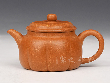 特点:原矿因含缎泥、红泥、紫泥等诸多共生矿,陶之后,于深沉之“橙红色”底上,满佈五彩斑斓的粗细、深浅之红、黄星斑点。