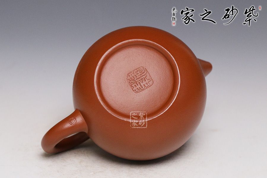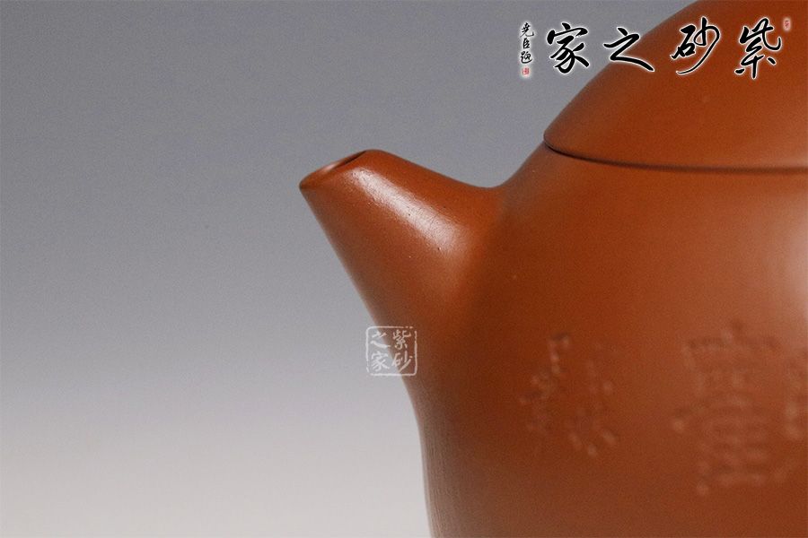 特点:质感绵密、紧实细緻,持之扎实沉重、红润豔丽,泥中极品,无以伦比;泥胚含少许原矿颗粒,冲淋热水后色变极大,呈红中带紫,养壶易现“包浆”之美。