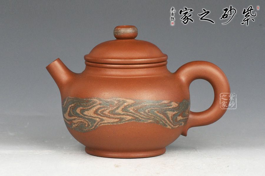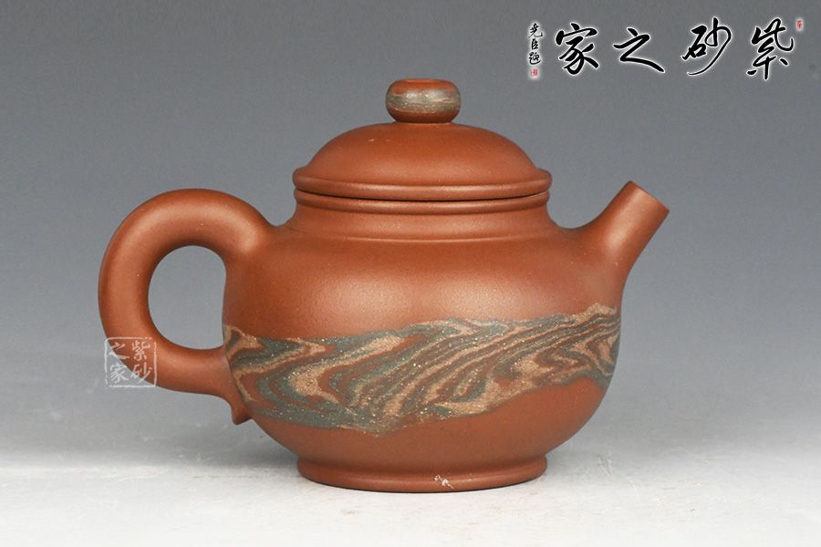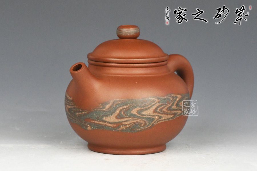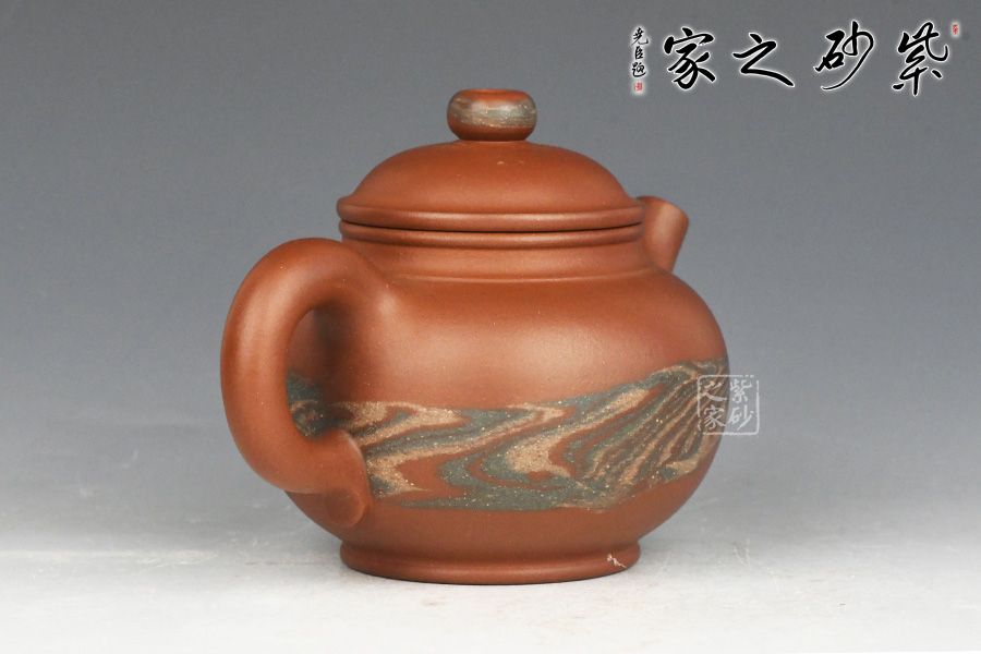 特点:块状中有青绿色的"鸡眼"、"猫眼"、色呈偏紫泛青,细而纯正,   十分稀少.烧成的壶呈现 红猪肝色,烧成颜色具体要看矿料的成分构成和烧成温度。