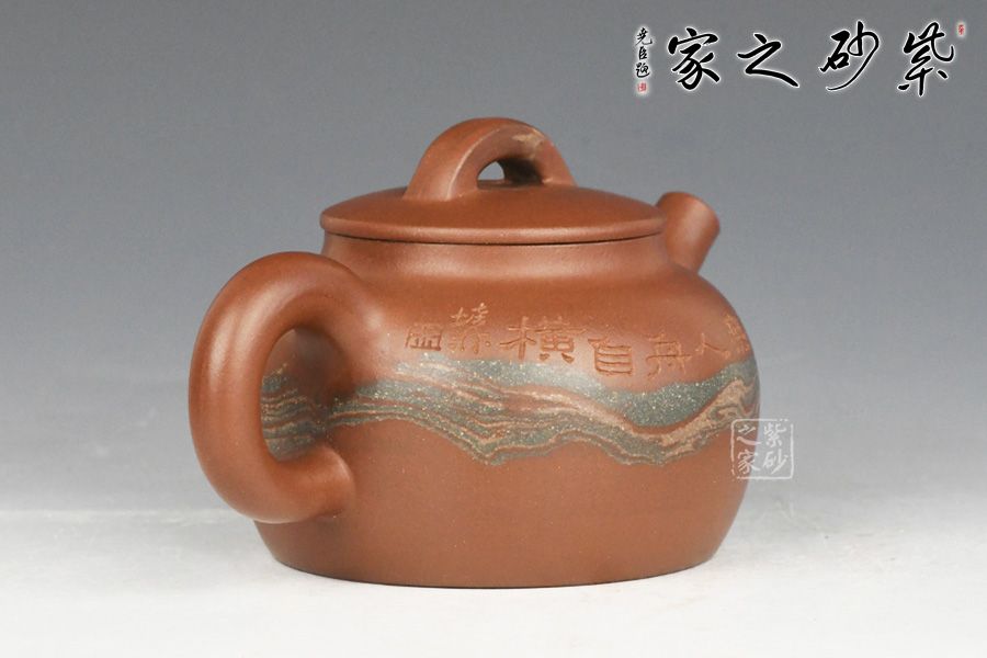 特点:块状中有青绿色的"鸡眼"、"猫眼"、色呈偏紫泛青,细而纯正, 十分稀少.烧成的壶呈现 红猪肝色,烧成颜色具体要看矿料的成分构成和烧成温度。