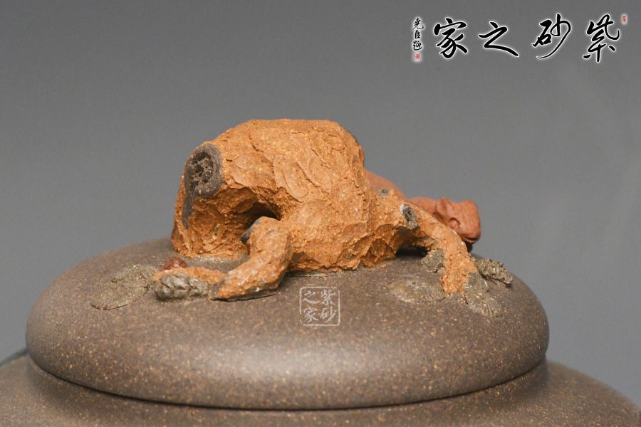 特点:双气孔结构明显,空气对流顺畅,简朴古雅,老味十足,别具明代紫砂原料气韵。 砂感重而不刮毛,色泽如紫似灰,沉重扎实不妥协,似硬汉风格,十分易于辨识。