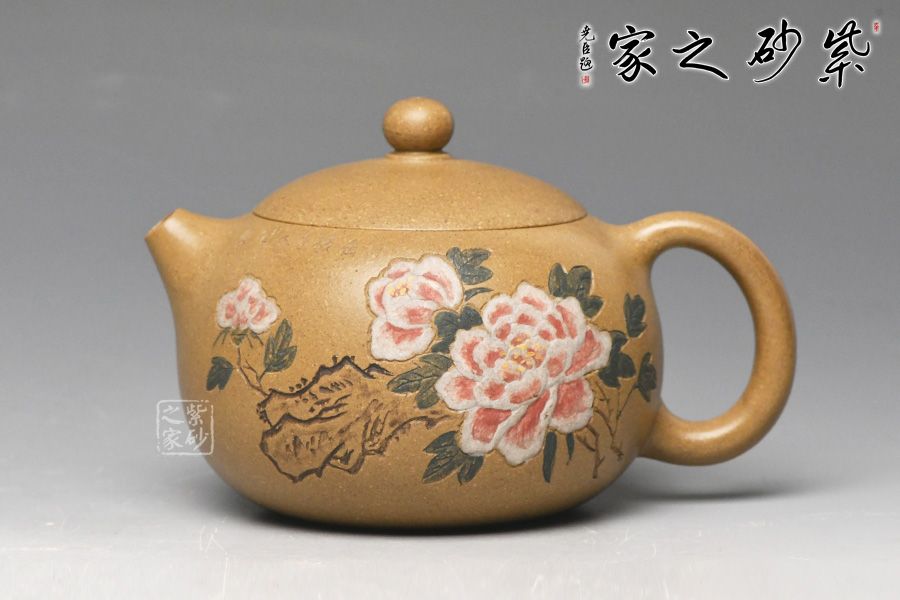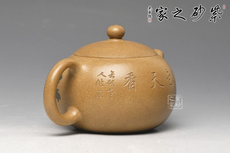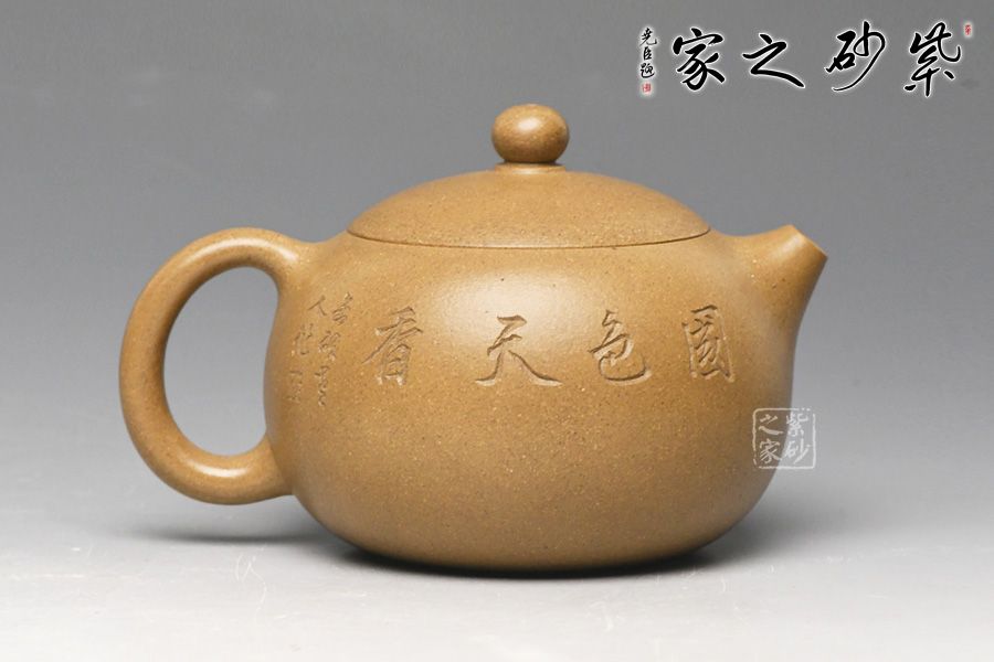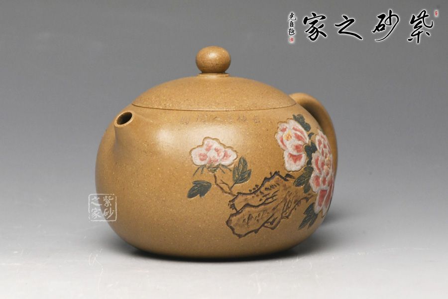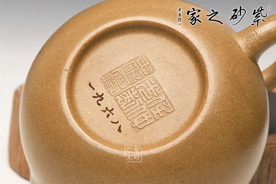 泥性:感甜嫩绵密,质坚而温润,呈近田黄色调,为江苏宜兴赵庄山系朱泥矿~黄石黄之共生矿,经挑拣练製而成,因含铁量只达6%左右,致陶之后呈“金田黄色”。