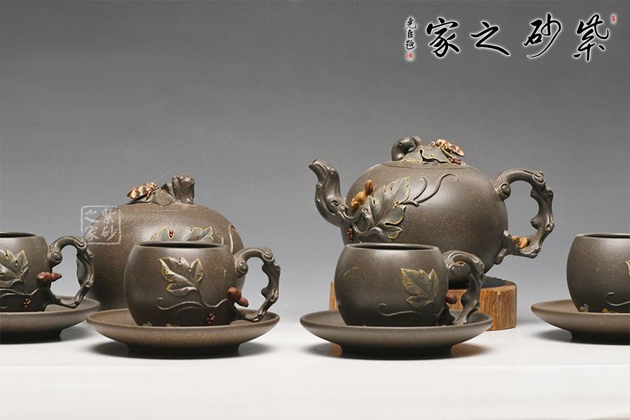 紫砂商城 >> 作品详情 >> 松鼠葡萄(十件套)