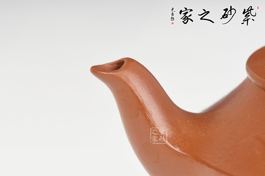 特点:质感绵密、紧实细緻,持之扎实沉重、红润豔丽,泥中极品,无以伦比;泥胚含少许原矿颗粒,冲淋热水后色变极大,呈红中带紫,养壶易现“包浆”之美。