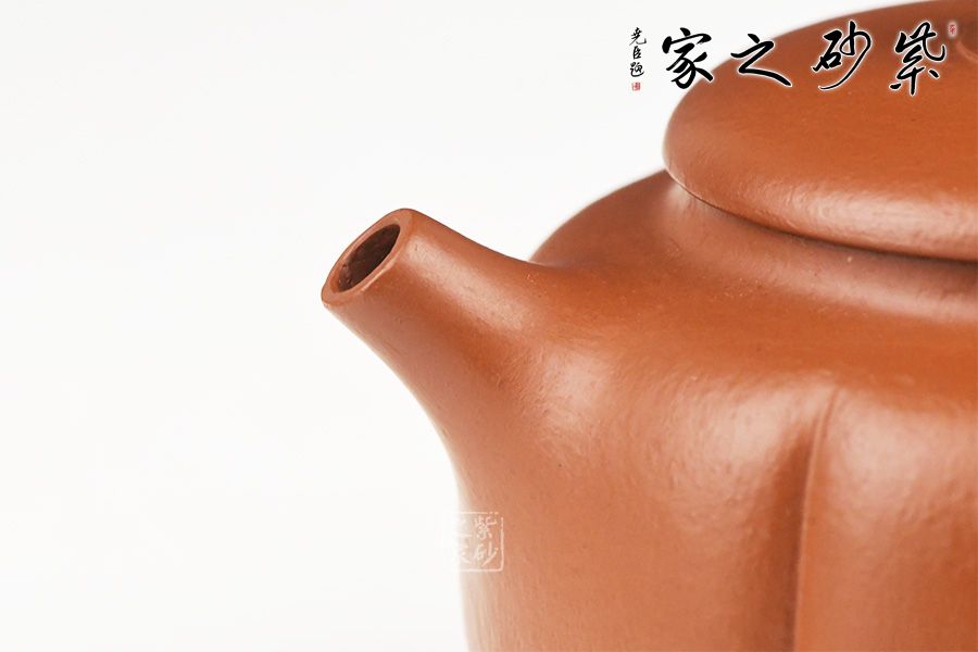 特点:质感绵密、紧实细緻,持之扎实沉重、红润豔丽,泥中极品,无以伦比;泥胚含少许原矿颗粒,冲淋热水后色变极大,呈红中带紫,养壶易现“包浆”之美。