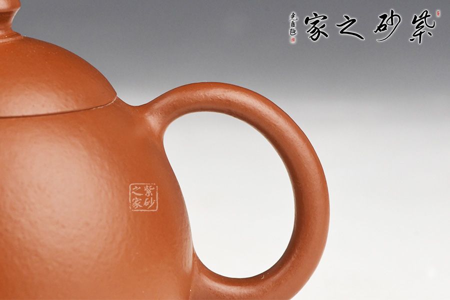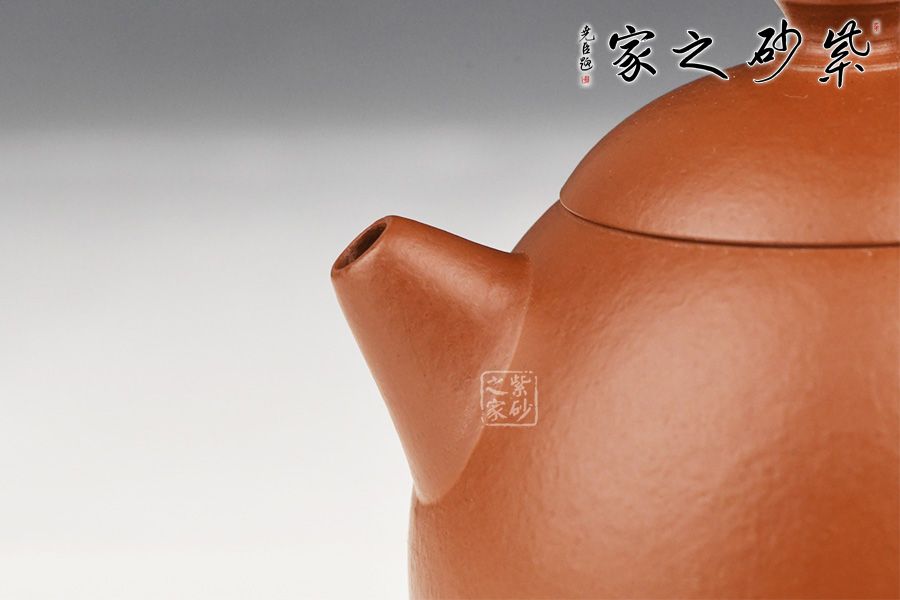 特点:质感绵密、紧实细緻,持之扎实沉重、红润豔丽,泥中极品,无以伦比;泥胚含少许原矿颗粒,冲淋热水后色变极大,呈红中带紫,养壶易现“包浆”之美。