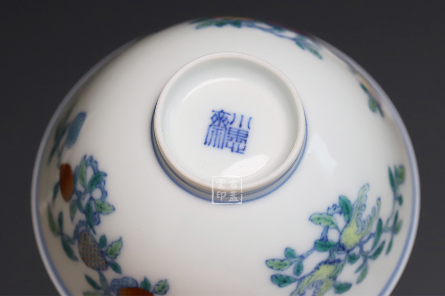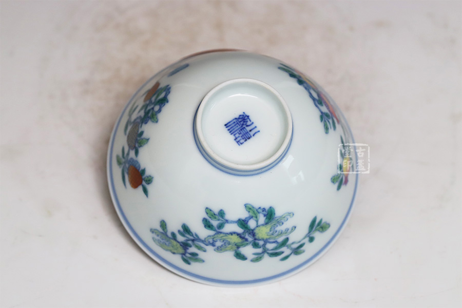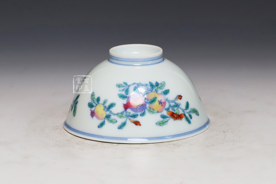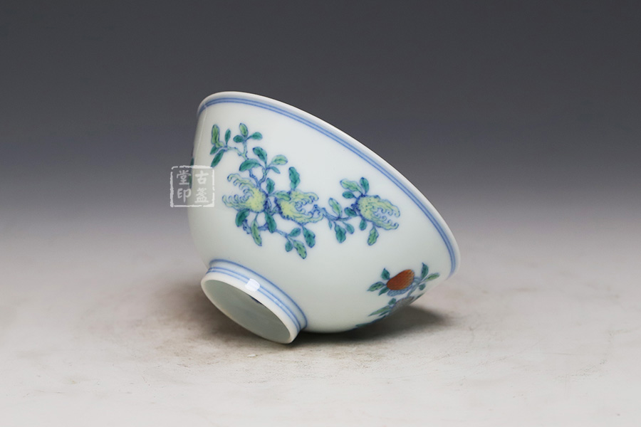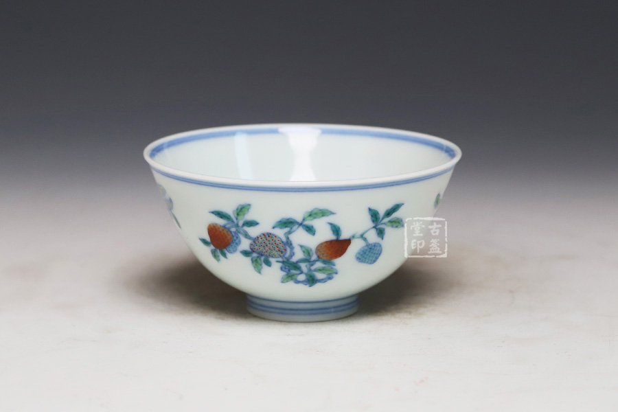 青花斗彩三果杯