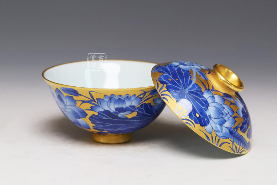 金地青花莲花纹盖碗 [ 编号:252555 ]