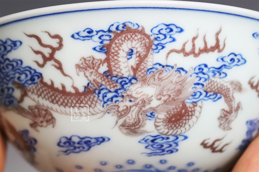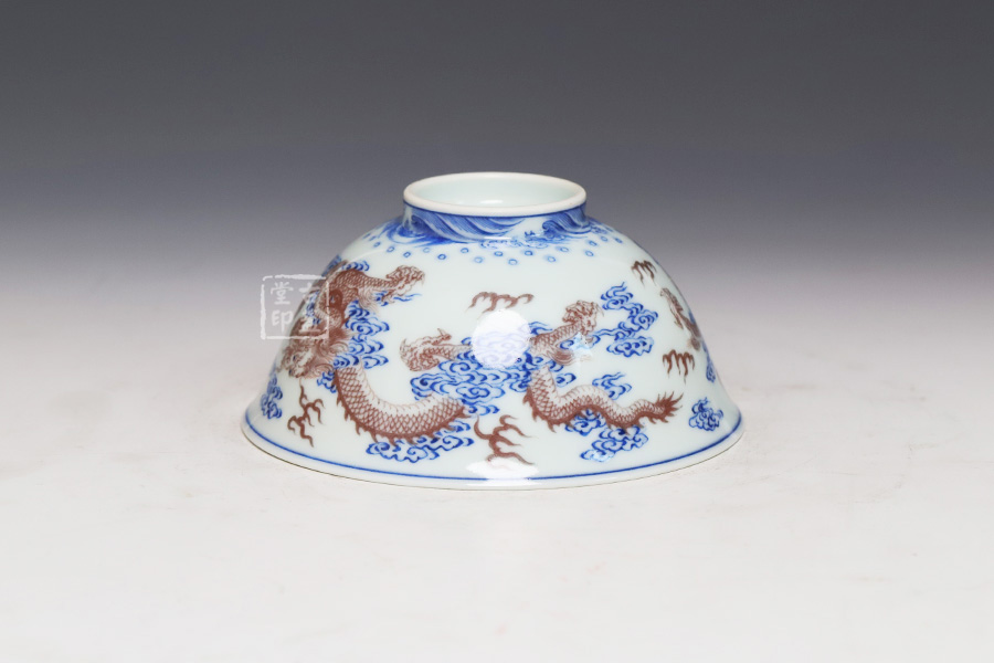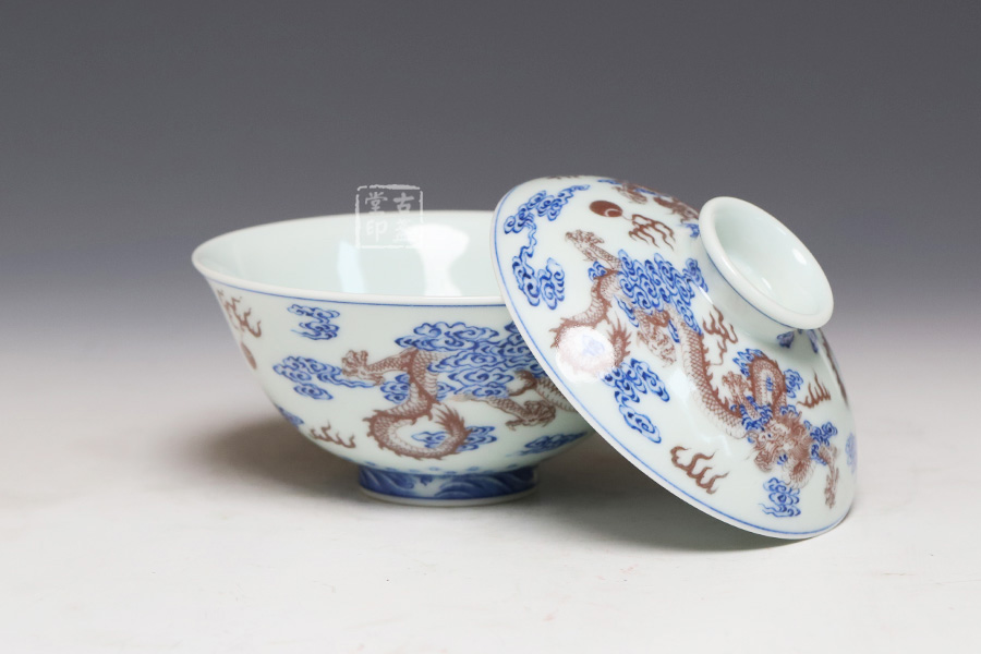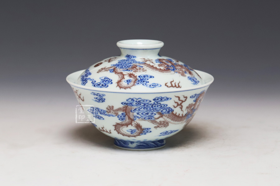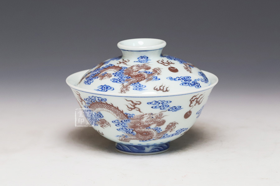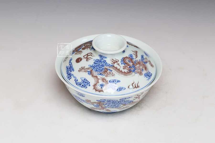 青花釉里红双龙戏珠纹盖碗 [ 编号:252556 ]