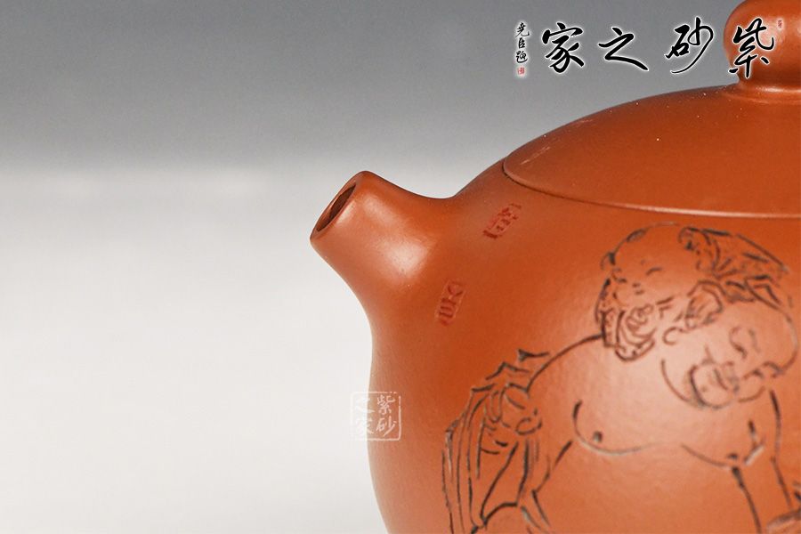 特点:质感绵密、紧实细緻,持之扎实沉重、红润豔丽,泥中极品,无以伦比;泥胚含少许原矿颗粒,冲淋热水后色变极大,呈红中带紫,养壶易现“包浆”之美。