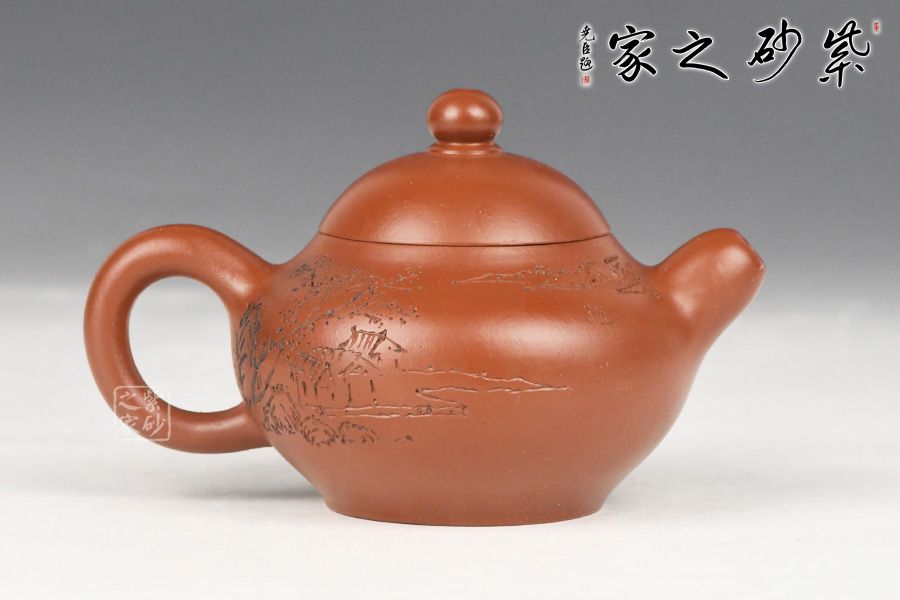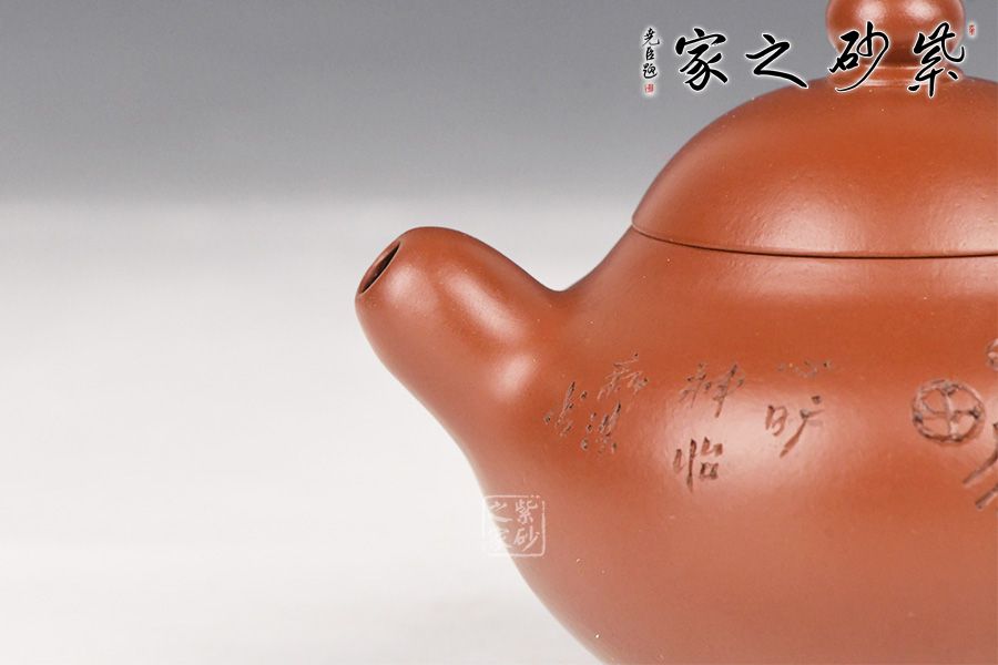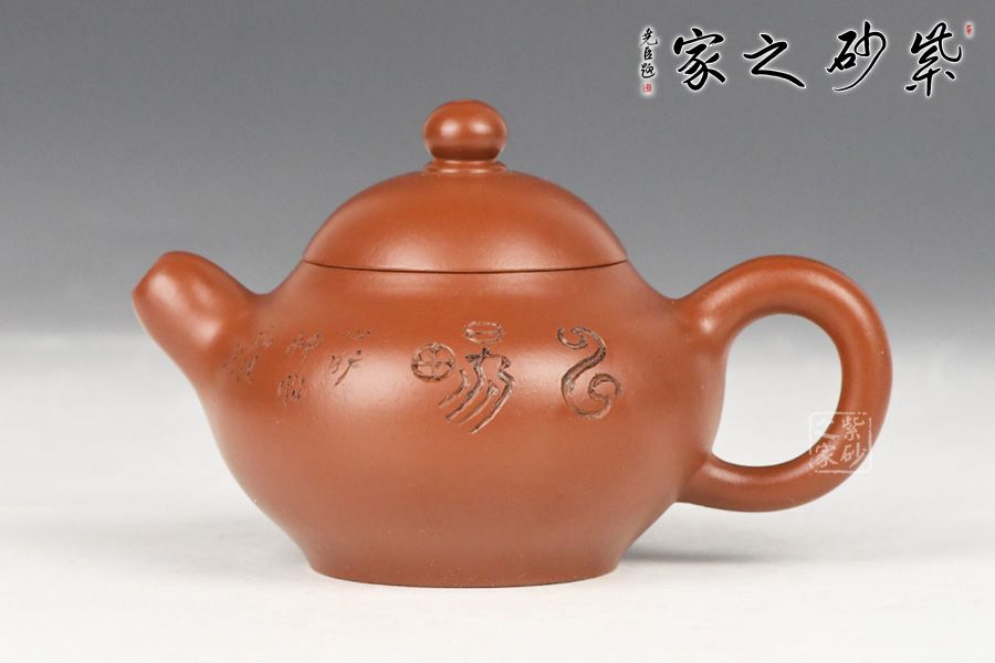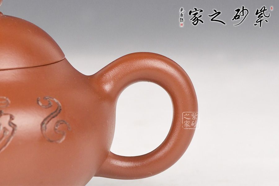 特点:质感绵密、紧实细緻,持之扎实沉重、红润豔丽,泥中极品,无以伦比;泥胚含少许原矿颗粒,冲淋热水后色变极大,呈红中带紫,养壶易现“包浆”之美。