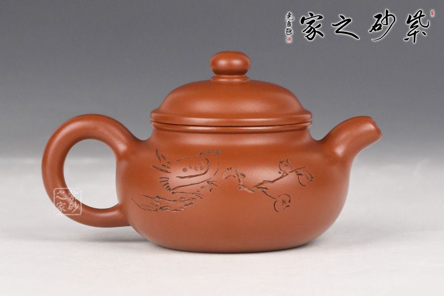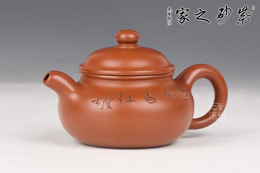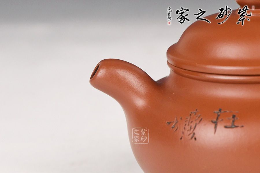 特点:质感绵密、紧实细緻,持之扎实沉重、红润豔丽,泥中极品,无以伦比;泥胚含少许原矿颗粒,冲淋热水后色变极大,呈红中带紫,养壶易现“包浆”之美。