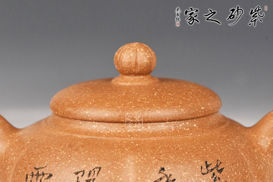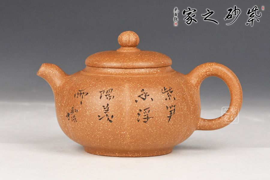 特点:原矿因含缎泥、红泥、紫泥等诸多共生矿,陶之后,于深沉之“橙红色”底上,满佈五彩斑斓的粗细、深浅之红、黄星斑点。